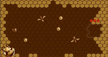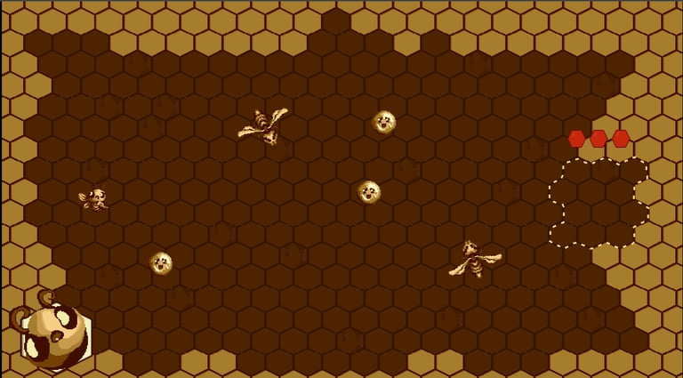 The bee: Our bee needs to tidy up her hive. The honey bubbles are scattered everywhere, and she must gently guide them to their place with her wingbeats.