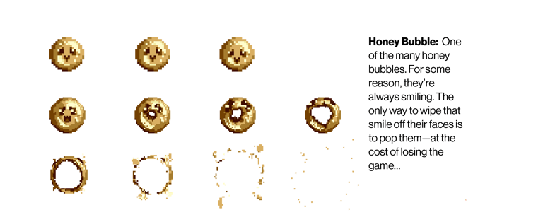 One of the many honey bubbles. For some reason, they’re always smiling. The only way to wipe that smile off their faces is to pop them—at the cost of losing the game...