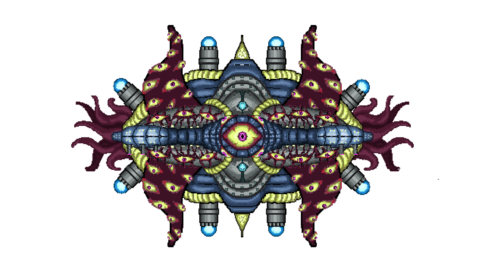 Unidentified object or unidentified being. All you know is that it’s an unexpected and dangerous enemy. Leader of the horde of enemy spaceships. These beings resemble strange machines with what appear to be tentacles and eyes. From the distance of your space station, you can’t tell if they are a single entity or simply fused together...