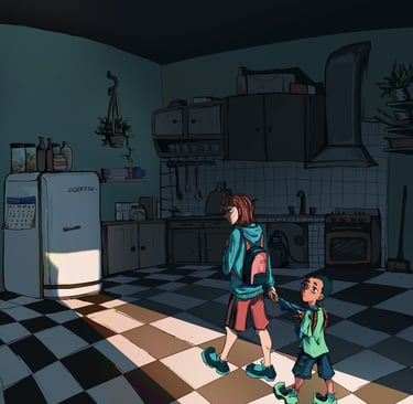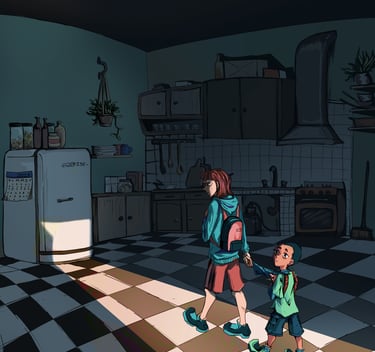 The story follows Lara and Kevin, two siblings who, after their mother’s sudden disappearance, begin to feel constantly watched. Following in her footsteps, they travel between worlds through mysterious doors, fleeing an unseen presence while searching for the truth behind her disappearance.
